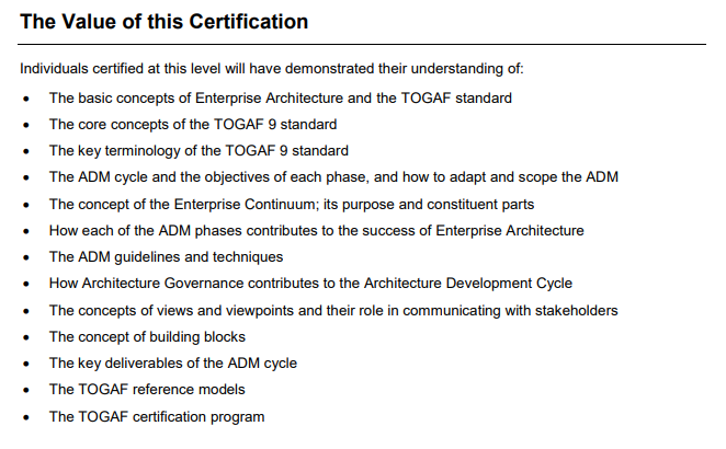 5. Revision Document Below documents I found really useful for final revision. If you go through the above point on the TOGAF website. I feel you should be able to clear the exam. I know I am indirectly referring to close to 200–300 pages & lot to memorize.
